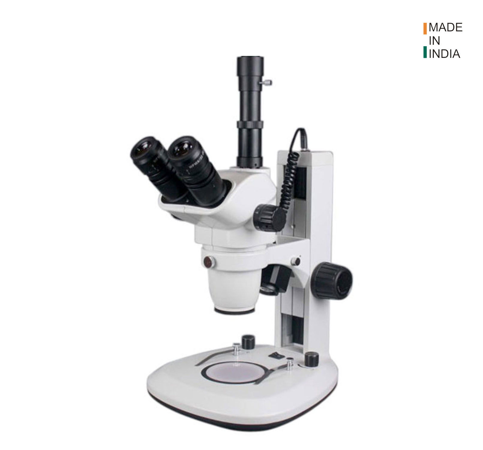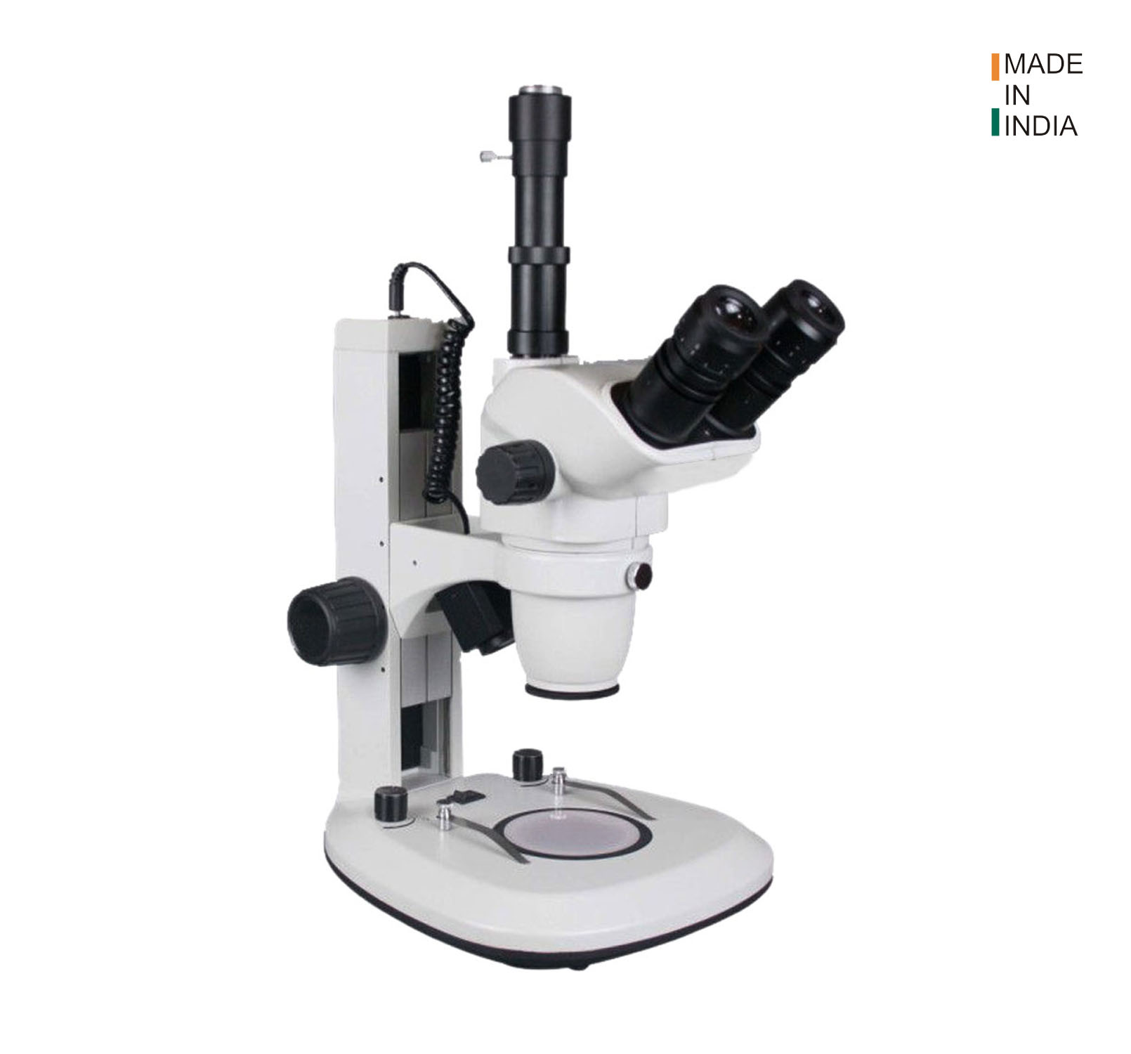 | Incident/Reflected Illumination | 30° oblique Incident illumination, 3.3W LED with life hrs. 65,000 with 6500K colour temperature and Uniform Light for entire FOV, with on-off switch and intensity controller. | |