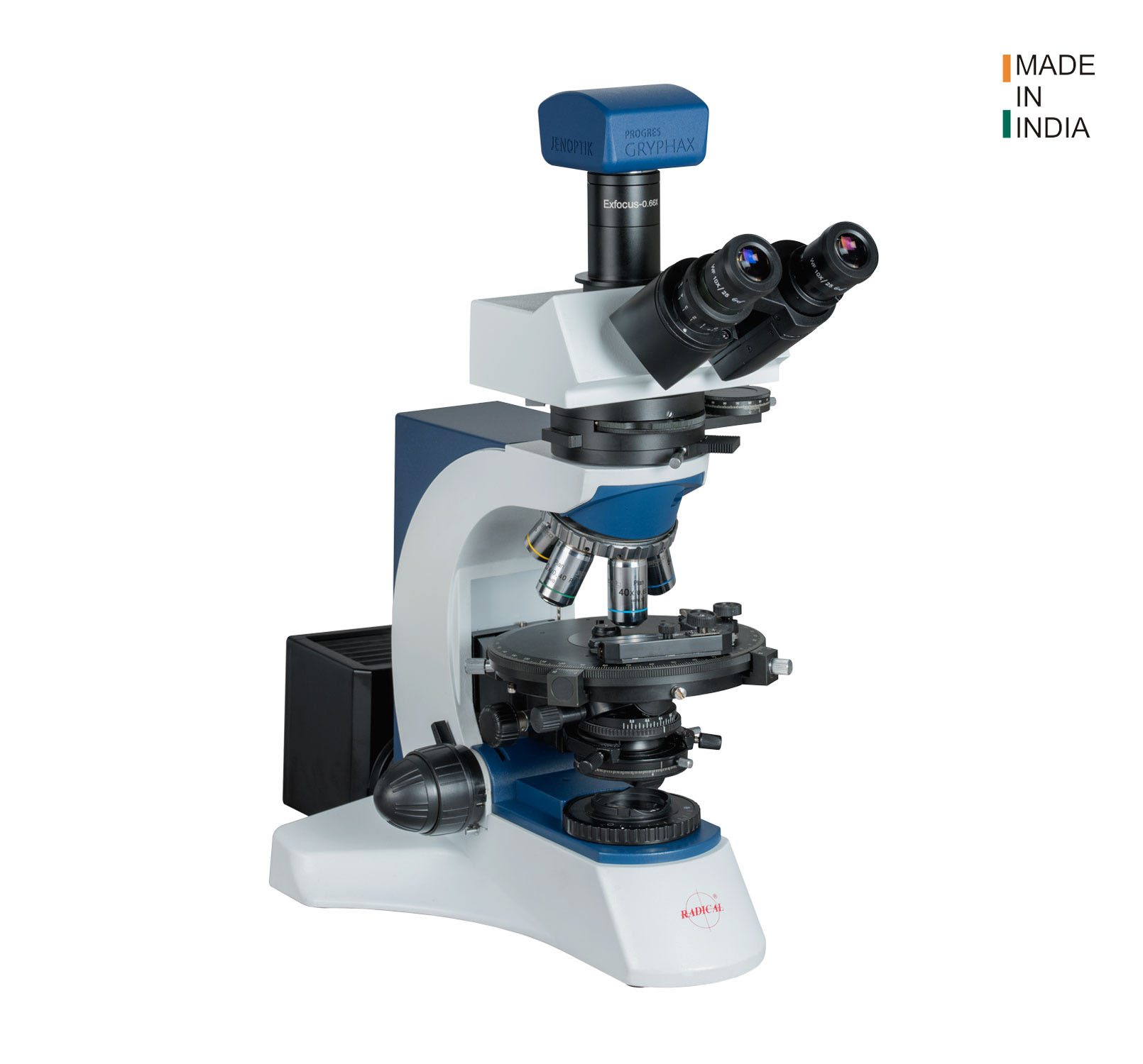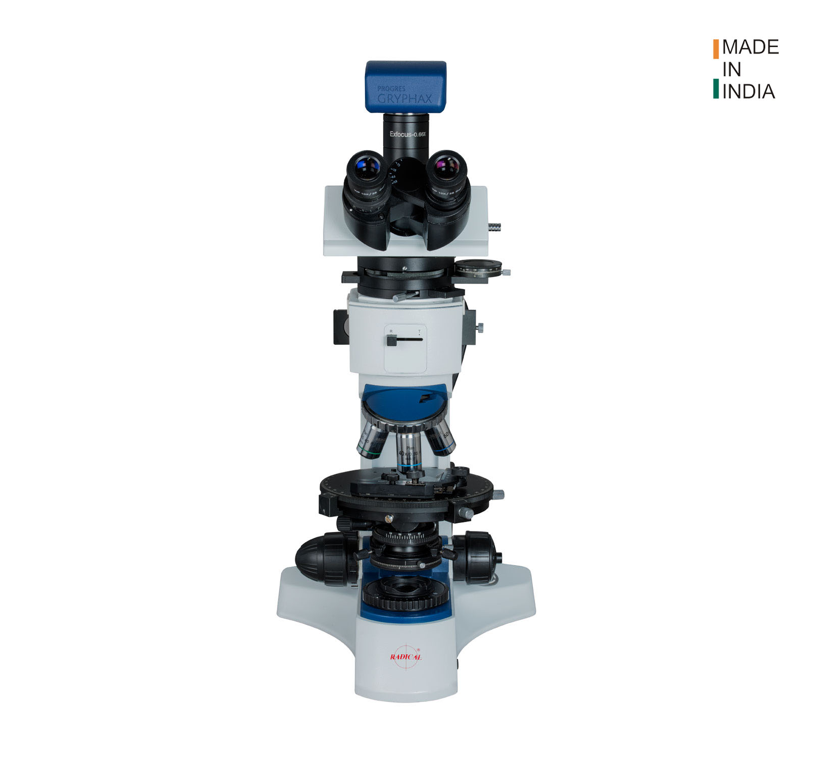 | Body | RXR5PMB | Rugged, single die cast, ergonomic design, touch point treated, acid resistant texture painted, intensity controller, on/off switch, rubber feet, Kohler illumination with aperture and field diaphragm, alongwith respective lens, heat protection filter, slot for different compensator with dovetail for interchangeable stages, blue filter (45mm) for white light (4500K), built in handle & cord wrap. |