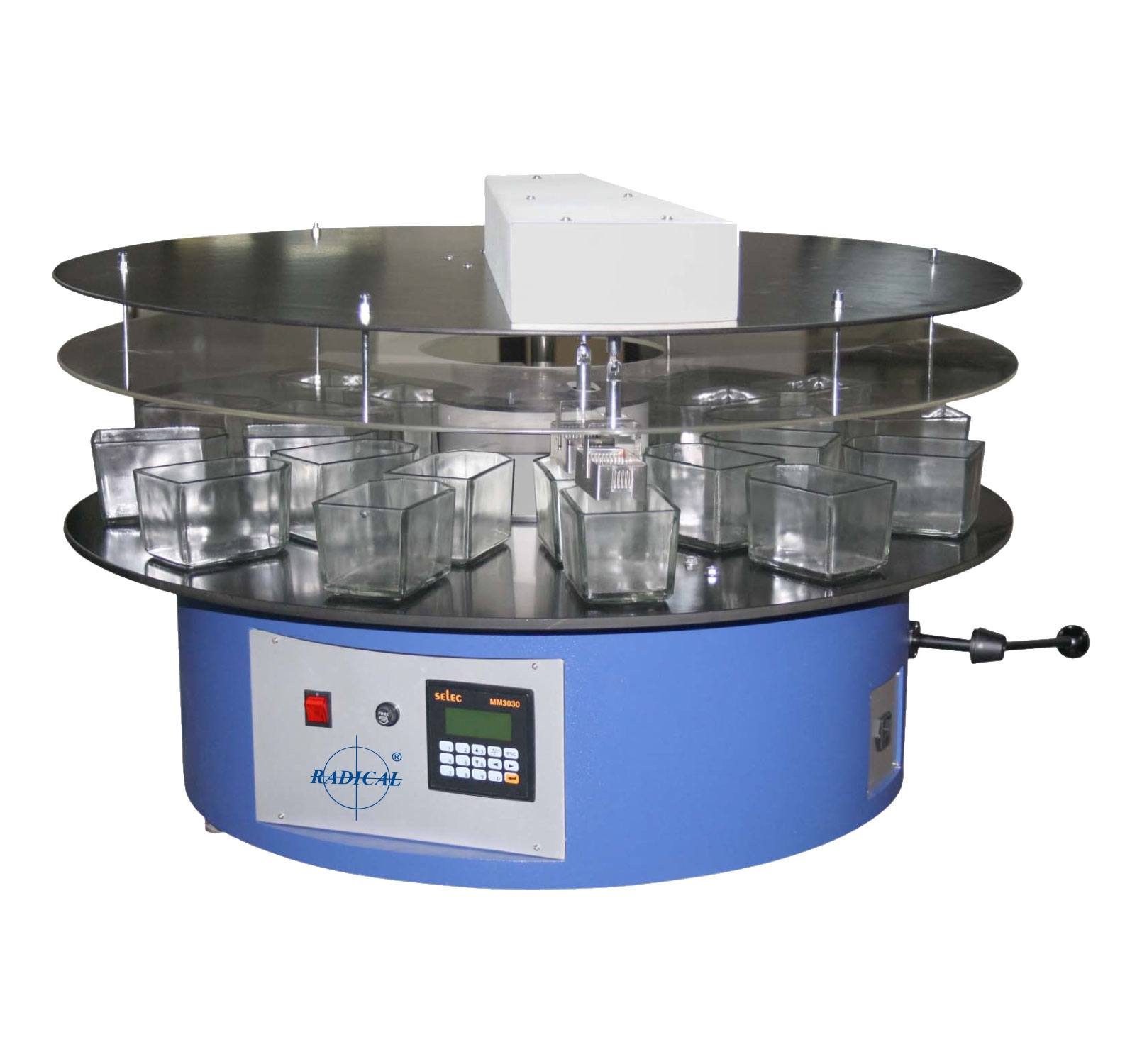 The most advanced automatic slide staining machine with 23 stations having a two tier arrangement and specially designed to meet all types of requirements in staining techniques starting from the routine hematological techniques to the most advance of staining in cytology and histology. Its two tier arrangement has 11 troughs and a blank station in the upper tier and 12 trough stations in the lower tier.