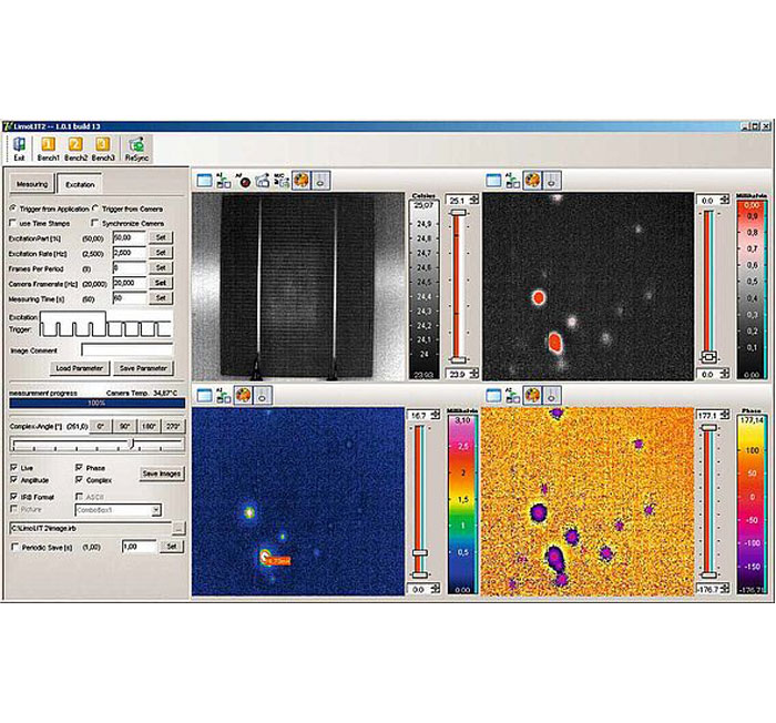 Apart from the PV-LIT hardware, the system's software does play a decisive role for the detection of defects. It allows the setting of important parameters, such as excitation and exposure frequency or excitation amplitude, and enables the evaluation with various algorithms of active heat flow thermography. Thereby, it is possible to display amplitude images and also freely definable phase images supporting the detection and classification of defects.