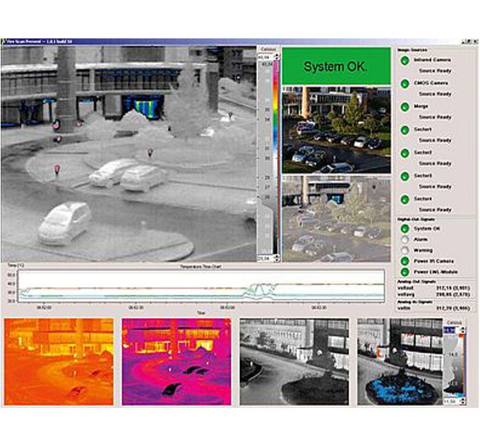 Calibrated infrared camera systems allow reliable measurement of temperatures, persons and objects at great distances. Therefore, not only it is possible to detect intruders but also, additionally, to automate this detection. This function can be applied since data of temperature is adjusted with threshold values in real time and an alert will be set off on its exceeding.